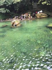 鼎湖山最美、最好玩的当属蝴蝶谷与飞水潭了。蝴蝶谷不愧有“小九寨”的称号,湖水清澈见底。飞水潭是当年孙中山先生曾经游泳的地方。两处湖水清凉,沿路潺潺溪水顺流而下,随处可见游客停留嬉戏,孩子在那里玩得很开心!