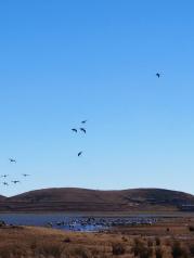 大山包,听名字就感觉是一个冷门而又人迹罕至的地方。当时由于正在修路,去景区的交通不是很好,我们自驾路上花了两个多小时才抵达,一路都是盘山而上。不过听说新修的一级公路已经建成通车啦,路程时间缩短了一半,现在自驾应该一小时就够了。当你最终到达目的地,就会发现一切跋山涉水都是值得的! 大山包景区分为两大块,一块儿是黑颈鹤自然保护区,另一块儿是鸡公山大峡谷。黑颈鹤保护区要收几十元的门票,包括一个巨大的高山海子,也就是黑颈鹤的栖息地,以及修建好的观景通道,人们只能在通道内或者远处观察黑颈鹤。其实观景通道距离黑颈鹤栖息的湖畔还有比较长的一段距离,但是为了保护这一稀有的国家一级保护动物,让它们有一处不受人类