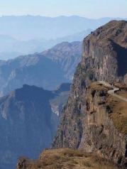 云南昭通附近实在没有什么可玩的地方,在偶遇当地车友的推介下去了几十公里之外的大山头,这是一处荒废了景点,一路骑行除了图三的这处小瀑布还略有看头之外,其它就没啥可看了,唯有那没车的山路十八弯,摩托车压弯的感觉挺不错的,屁股扭上天了也没人看到[呲牙];但到了山顶却被眼前的景象所震撼了[发呆], 只见远处的山脉延绵不绝,千山万壑,峰峦雄伟!我的铁骑登临在峰顶的悬崖边,那种雄壮的心情无以言表[得意],大有“会当凌绝顶,一览众山小”的豪迈之情![强][强][强]