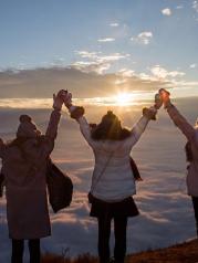大山包——在山顶为了等日落,那个风吹的喔,之大,自行想象,还有人为了拍美照,很早就架好三脚架,早早占领机位,一直你那里吹冷风,我们女人呢当然是拍拍拍,从下午上山走到山顶就等着,但是一直在拍拍拍,等到最后的那一刻日落,黄金10分钟留下了我们3个美妞的身影。