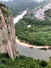 江郎山的丹霞地貌是世界文化遗产。进入景区坐接驳车到下客点,抬头仰望三爿石,雄伟壮观。一路登山,先看到会仙岩,相传八仙在此岩石下聚会下棋。是丹霞地貌的特有景观。一线天,令人震撼,高耸入云的两爿石,中间居然留了狭小的缝隙,走过百步梯,到达登天坪,望着蓝天白云下的三爿石,不禁感慨“造化钟神秀,阴阳割昏晓”。霞客亭,是观赏三爿石的最佳点,不愧是徐霞客留下的足迹。选择走路下山,一路溪水叮咚作伴,竹林摇曳,风景这边独好。快到山脚一大片清澈的湖水映入眼帘,便是须女湖了。传说中的须女就是化作一汪湖水陪伴在江郎身边。江郎山山青水秀,景致宜人,值得一游。