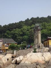 普陀山山上十几个景点,天气大热,建议10月份以后来,就去了南海观音,普济寺,千步沙,南天门,基本全靠徒步,有公交车也不是直接到景点,还要走很长一段距离,很累,带小孩的和老年人慎重,岛上全部转完要住2晚差不多。