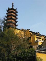 金山寺大名鼎鼎,位于江苏镇江市区西北的金山上,始建于东晋,高四十四米,周五百二十米,距市中心三公里。金山寺庙依山而造,殿宇厅堂幢幢相衔,亭台楼阁层层相接,