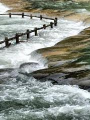 银链坠潭瀑布不错, 水流湍急,沿着旁边的步栈道一路向上,可以欣赏不同角度的银链坠。 很多游客在这边拍照合影留念。 下意识的握紧了手机,万一掉下去,肯定捡不回来了啊~