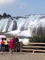 陡坡塘瀑布这个景点比较单一就是一个特别宽的瀑布,但是,特别壮观,大气。属于黄果树瀑布景区,门票含在黄果树景区门票里。有一个观景台,所以一定到瀑布前面的观景台照相,那里取景最好,其他地方有栏杆,照瀑布不美。同时在观景台可以感受到瀑布的丝丝水滴,湿润,凉爽。用半个小时拍照欣赏就足够了,是个不容错过的景点!雨季去最好,水量大,非常壮观。这是今年十月底的照片,水量不是太大。请欣赏。