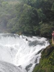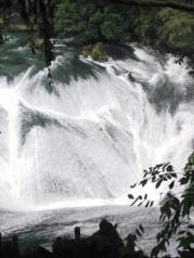 远远地就听到这个银链坠潭瀑布的咆哮的声音,请看,真的是相当的壮观。由于有很多条小小的瀑布流向一个地方,而且是从四面八方的。 天地的都被他们的声音笼罩着而且的话水汽也是相当的厉害。 在这里静静地待了十分钟,吹吹风还是很写意的。 走到天星桥景区的下半段最后就能看见,从这里再走一段路就可以走到索道那边了,也就是结束了三个小时的步行。