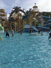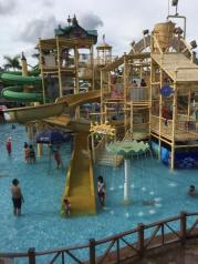 长江水世界超好玩,由于晚上6点就关门,时间太紧,没有全部场都玩。小朋友玩得很开心,特别是人工冲浪,像在海里一样。更衣间有热水和风机供应,淡季都这么多人,暑假更不得了。