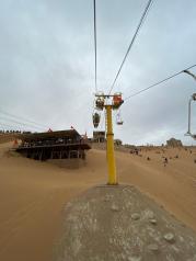 作为沙漠主题的景点而言,沙坡头在娱乐性上是做的最好的,当然我是指以娱乐为目的,如果是以观景或探险为目的,可以往更大更深的沙漠去,景观也更原始壮观,但大多数人去沙漠仅仅是为了安全的体验一下风情,参与一下项目,那沙坡头是非常不错的选择。所谓沙坡头其实也就是腾格里沙漠最靠近中卫市区的那一片,当年王维在这里写下了长河落日圆,大漠孤烟直的千古名句。景区很大,分为黄河区和沙漠区,项目主要有游艇、羊皮筏、滑索、滑沙、骑骆驼、沙漠冲浪、滑翔七种,其中滑索和滑翔是单买项目,每个100元,其余五个打包联票285元,推荐买这个联票,基本可以玩个一整天了。