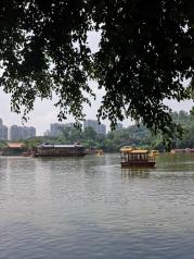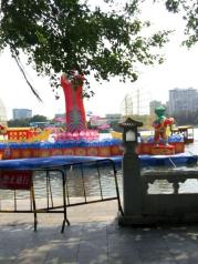 圆明新园是免费的景点,环境很不错,仿皇宫的建筑群,下午5点左右去的,人很少了,很舒服很幽静。里面有游乐场,有摊位和机动游戏,还有游船,小朋友会很喜欢的,当然,价格也不会很便宜。就是湖水很脏,黑黑黄黄的,有点煞风景。