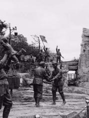 来到娄山关景区门口,没有拥挤的人群、没有矗立的高楼,没有嘈杂的闹声、没有伤身的尾气,唯有的就是青山、绿水、就是鸟啼、欢笑,就是激情、活跃、就是枪炮、坦克,还留有一丝庄重,周围充满着浓浓的红色、战争气,走进景区,富有年代感的画面瞬间瞬间映入眼里,看到很多的红旗、枪炮和碉堡,真的被吓得一匹。(关键是真枪、真炮啊),有射箭项目。还有一些类似军校一样的“训练场”,难度相对来说,还是非常大的。