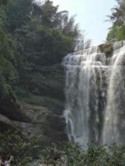 我们一行四人自由行去到四洞沟风景区,一进大门右边有几台自动售票机,抄作半天售不成票,跑去问售票员,他说他们不管这一块,没办法只好排队在窗口买全价票及电瓶车票,进去后坐电瓶车下车后才真正到了四洞沟大门,检完票后往里走,两边都是当地农民卖各种小工艺品,以及当地特产:竹笋,头菇,竹荪等农产品,刚到赤水不知行情没敢买,后乘电瓶车又开到山角下,司机说到站了,我们一行人从这开始往上走,路过一长廊两边都是卖小吃,当时以是中午11点半了,大伙商量说买点小吃尝尝,充饥好爬山,结果划了半到价划不下来,一条比手指头粗些的一根熏排骨要15元一条根,(这本是就饭的菜,让当地人拿来当小吃卖,结果都凉了肥腻的不行),每人又